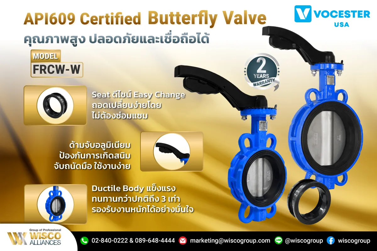 วาล์วผีเสื้อ (Butterfly Valve) VOCESTER รุ่น FRCW-W มีมาตรฐานการรับรอง API609 (…)