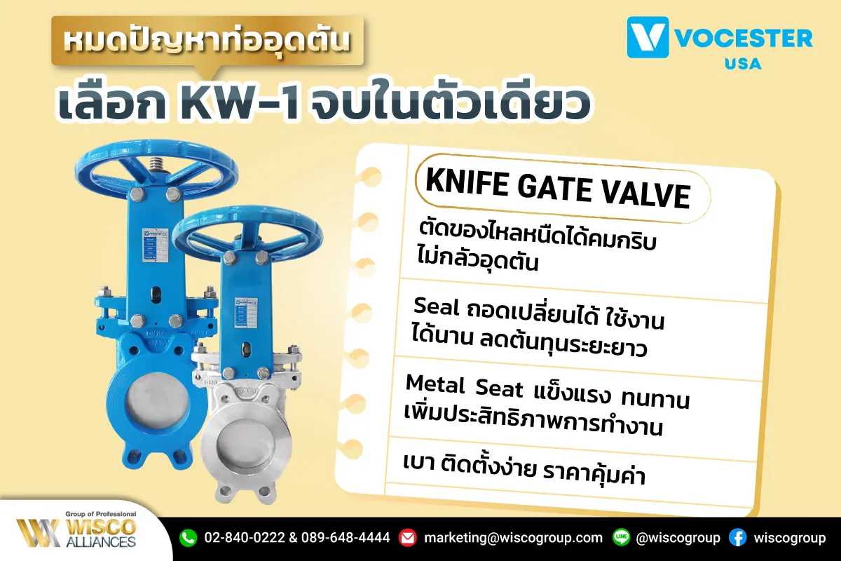 ไนท์เกทวาล์ว Knife Gate Valve VOCESTER USA รุ่น KW-1 (วาล์วประตูมีด) ที่มีใบมีดคม (…)
