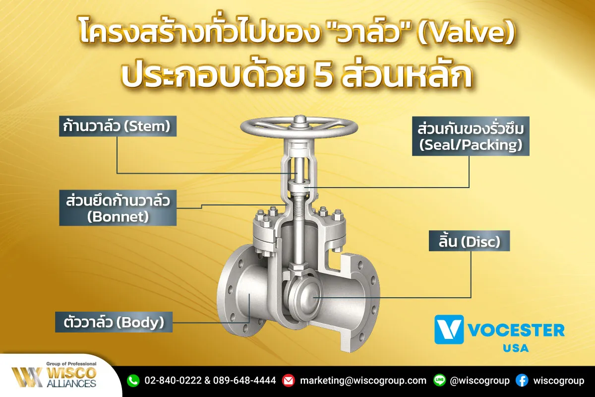 โดยทั่วไปวาล์วจะประกอบด้วย 5 ส่วนหลัก ดังที่แสดงในภาพ แต่ละส่วน (…)