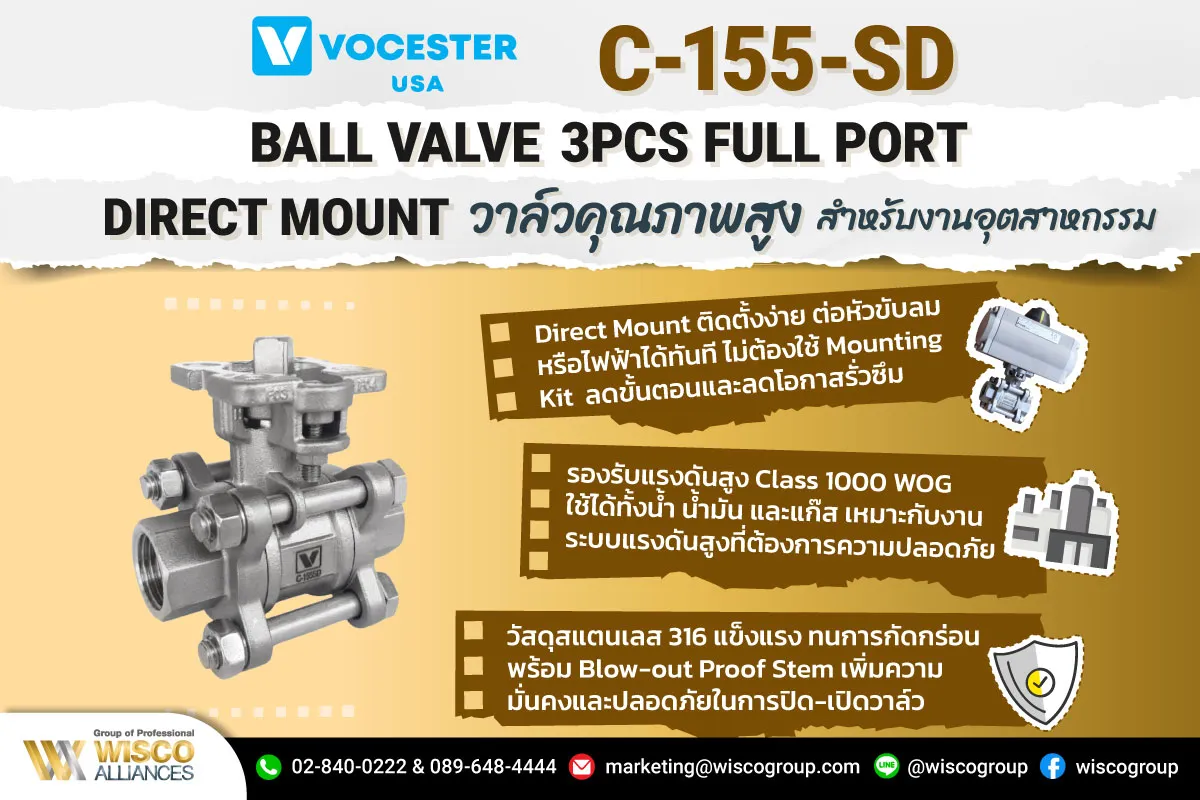 Ball Valve C-155L จาก Vocester USA เป็นวาล์วอุตสาหกรรมคุณภาพสูงที่ถูกออกแบบมาเพื่อ (…)